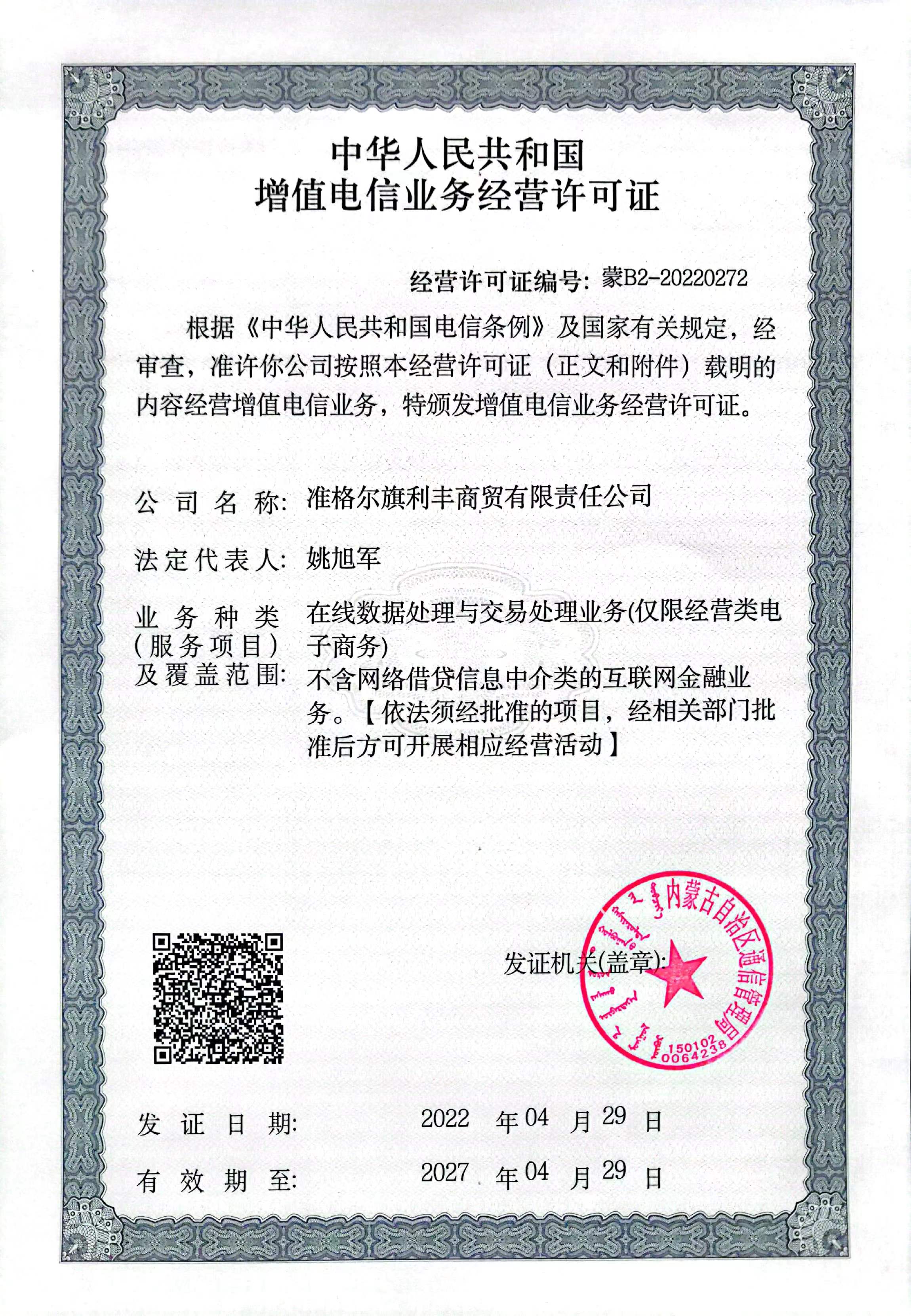 电信增值业务经营许可证
