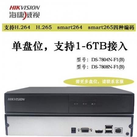 硬盘录像机 海康威视8路网络硬盘监控录像机4/16路高清数字NVR主机7804N-F1 B