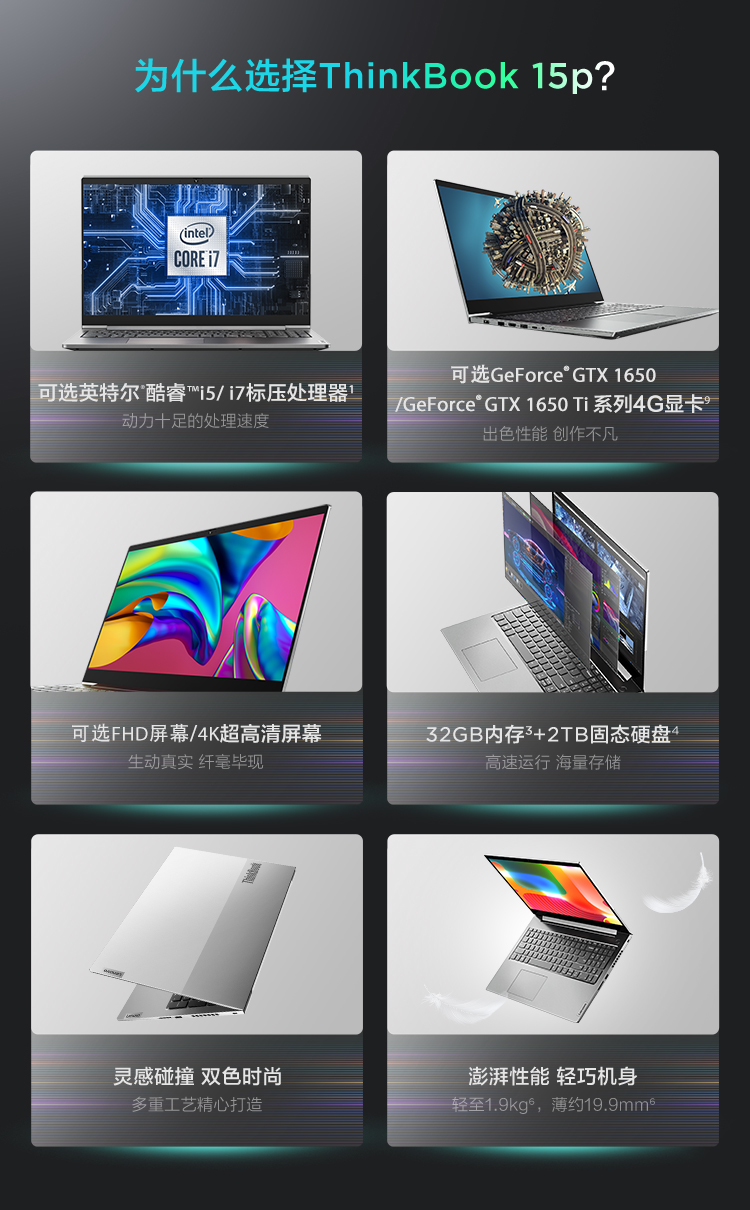 联想ThinkBook 15P(00CD) 15.6英寸笔记本电脑 高色域 标压i7 GTX1650Ti-4G显卡 16G内存 512G固态硬盘