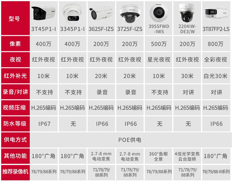 海康威视 3T87FP2-LS 视频监控设备 海康威视网络监控摄像头800万臻全彩180度广角带POE 官方标配