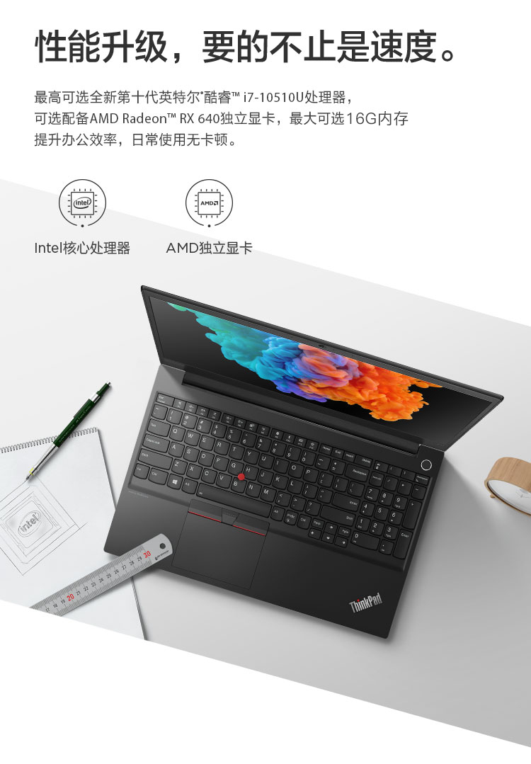 联想ThinkPad 十代酷睿i7 轻薄本 商务办公便携学生笔记本电脑 游戏本 i7-10510U E15 15.6英寸 高清IPS屏 0LCD 8G内存 512G固态硬盘 升级