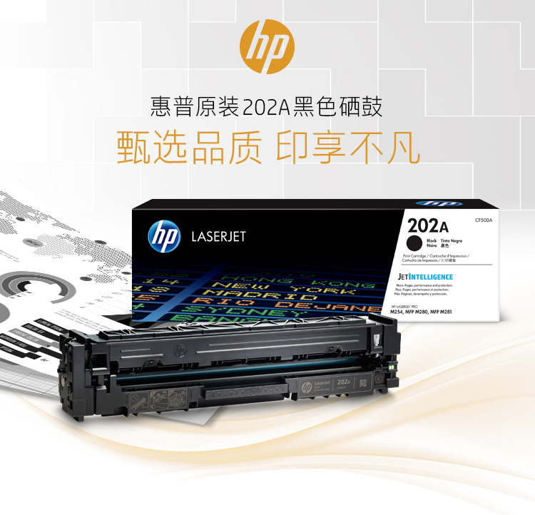 惠普(HP)CF500A 202A原装黑色硒鼓 适用hp m281fdw 254dw 254NW 280NW 281FDN 打印机硒鼓