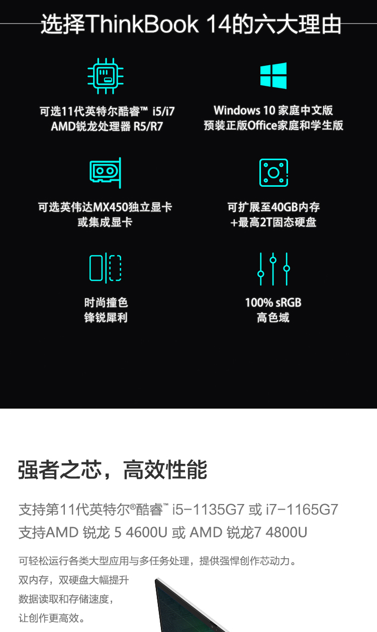 联想ThinkBook 14 2021款 14英寸轻薄笔记本电脑 【6ACD】 11代酷睿i5-1135G7 核显 16G 512G 100%sRGB 高色域 标配