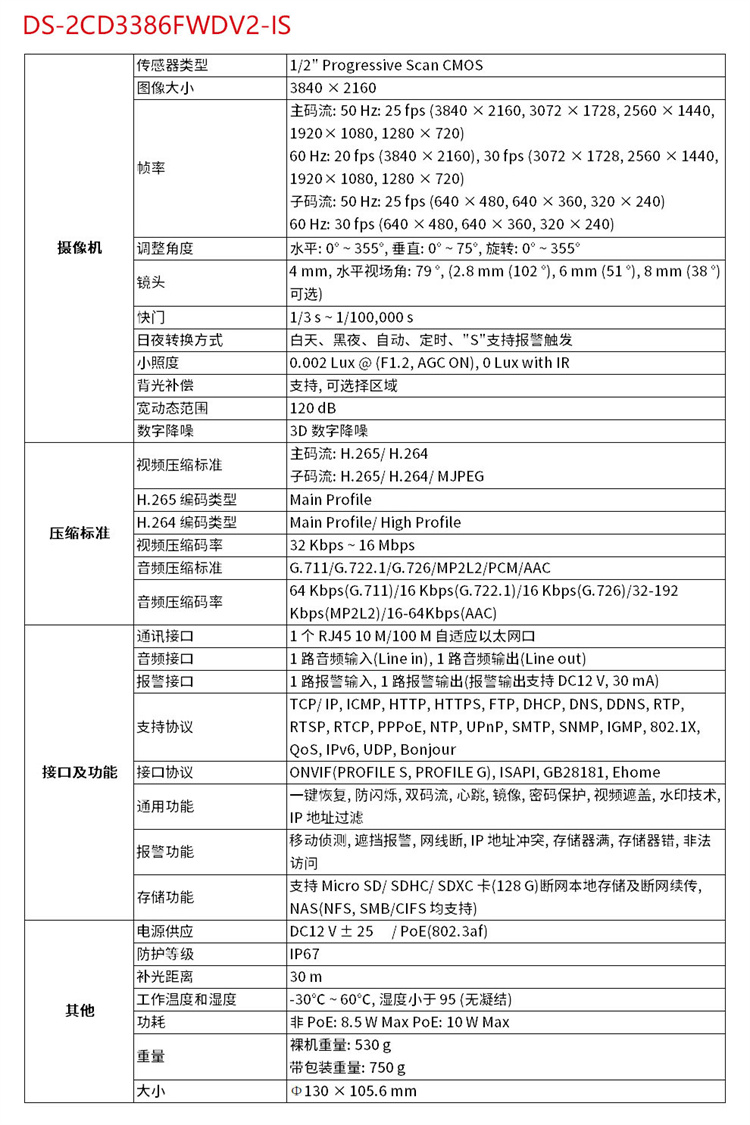 海康威视 DS-2CD3346WD-I (400万)海康威视星光级搭配监控设备套装高清半球带POE6MM焦距