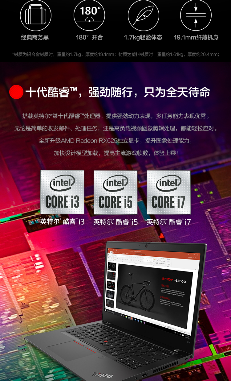 联想商用笔记本ThinkPad L14(i7-10510u/8G/1T+128G/独显/人脸识别)