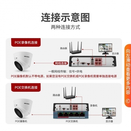 海康威视 T12-I 视频监控设备 海康威视网络监控摄像头200万高清红外夜视半球摄像机带POE 官方标配 2.8MM焦距